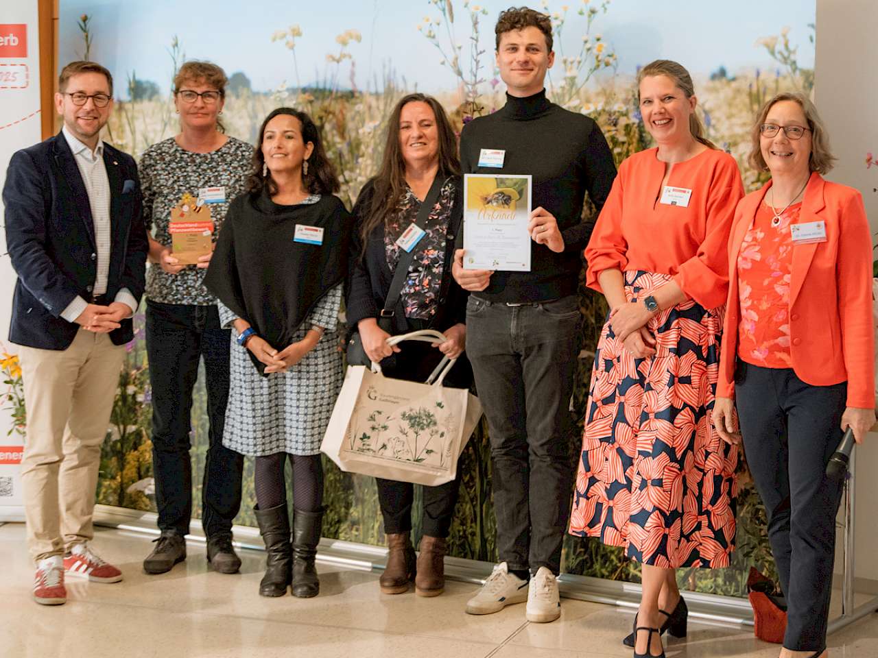 Insgesamt gab es Geld- und Sachpreise im Gesamtwert von mehr als 10.000 € zu gewinnen. Ein wesentlicher Aspekt des Wettbewerbs ist es, den „Funken der Begeisterung“ weiterzutragen. Daher waren alle Projektbeteiligen dazu aufgerufen, neben ihrer Pflanzaktion auch Infoarbeit vor Ort zu leisten. Ob Social-Media-Post, Gartenführung oder Zeitungsartikel: Die Teilnehmer*innen konnten ihrer Kreativität freien Lauf lassen. „Die Jury ist begeistert, dass dieses Jahr knapp 7.700 Menschen in die Wettbewerbsbeiträge involviert waren“, freut sich Dr. Corinna Hölzer. Cornelis Hemmer fügt hinzu: „Wenn sich demnächst noch ein weiterer Sponsor meldet, steht dem Wettbewerb in 2026 nichts im Wege!“